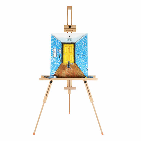 Мольберт полевой-тренога, бук, с полкой, высота 132-192 см, высота холста 112 см, BRAUBERG ART, 192262