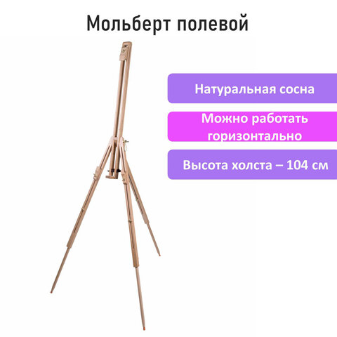 Мольберт полевой - тренога из сосны, высота 86-181 см, высота холста 104 см, BRAUBERG ART, 192263
