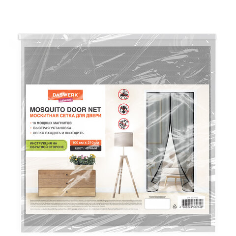Москитная сетка дверная на магнитах 100х210 см, антимоскитная, черная, DASWERK (ДАСВЕРК), 607985