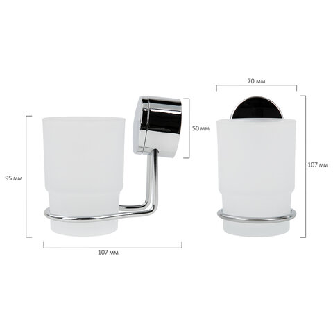 Стакан для туалетных принадлежностей LAIMA, хромированная сталь/стекло, крепление к стене, 607429