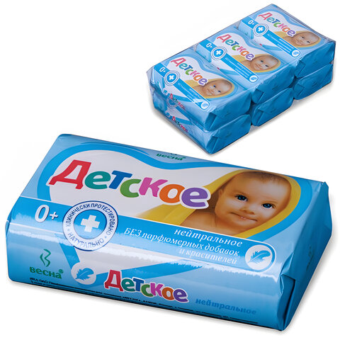 Мыло туалетное 90 г ДЕТСКОЕ (Весна), нейтральное, без отдушек и красителей, 1140, 6112, 1140,6112