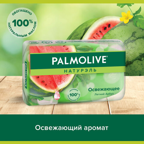 Мыло туалетное 90 г PALMOLIVE НАТУРЭЛЬ "Летний арбуз" освежающее с летним арбузом содержит увлажняющие компоненты и придает мягкость вашей коже.