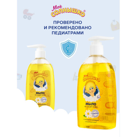 Мыло жидкое детское гипоаллергенное с экстрактом ромашки 300 мл, МОЕ СОЛНЫШКО, дозатор, 1702