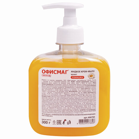 Мыло-крем жидкое 300 г ОФИСМАГ, "Ромашка", дозатор, 606783