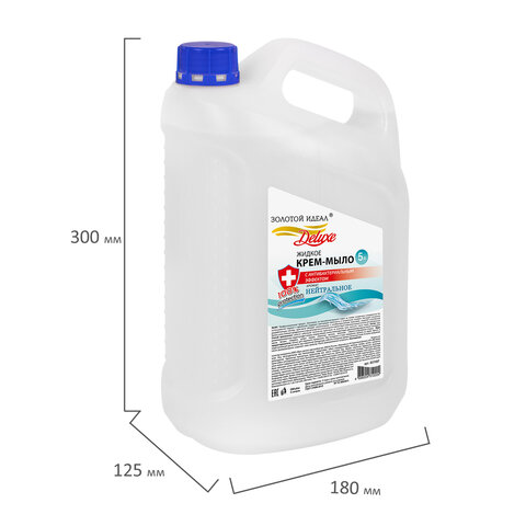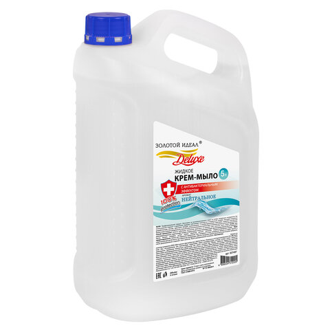 Мыло-крем жидкое с АНТИБАКТЕРИАЛЬНЫМ ЭФФЕКТОМ, 5 л, ЗОЛОТОЙ ИДЕАЛ DELUXE "Нейтральное", перламутровое, 607497