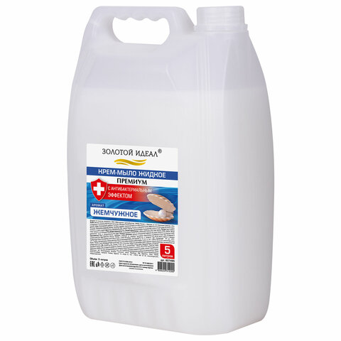 Мыло-крем жидкое с АНТИБАКТЕРИАЛЬНЫМ ЭФФЕКТОМ, 5 л, ЗОЛОТОЙ ИДЕАЛ "Премиум Жемчужное", 607495