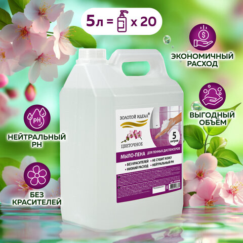 Мыло-пена для специальных диспенсеров 5 л ЗОЛОТОЙ ИДЕАЛ "Цветочное", 605908