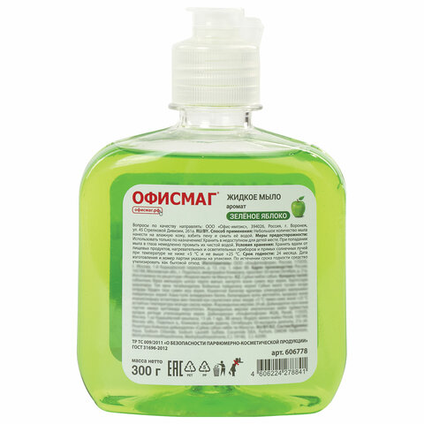 Мыло жидкое 300 г ОФИСМАГ, "Зеленое яблоко", флип-топ, 606778