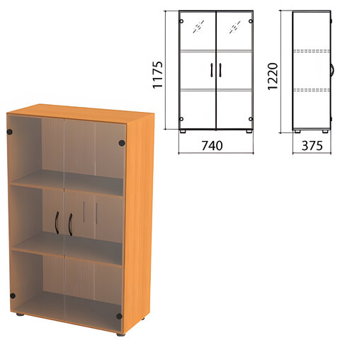 Шкаф закрытый со стеклом "Фея", 740х375х1220 мм, цвет орех милан (КОМПЛЕКТ)