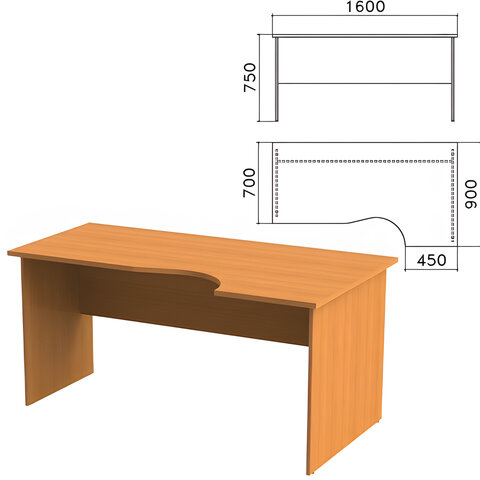 Стол письменный эргономичный "Фея", 1600х900х750 мм, правый, цвет орех милан, СФ14.5