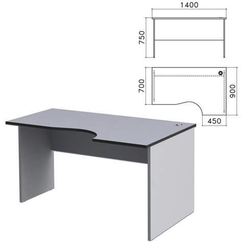 Стол письменный эргономичный "Монолит", 1400х900х750 мм, правый, цвет серый, СМ4.11