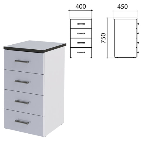 Тумба приставная "Монолит", 400х450х750 мм, цвет серый (КОМПЛЕКТ)