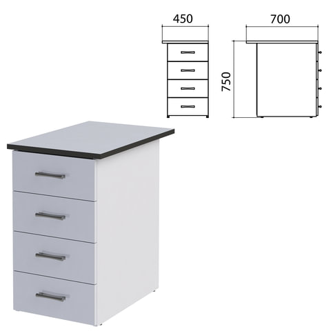 Тумба приставная "Монолит", 450х700х750 мм, цвет серый (КОМПЛЕКТ)