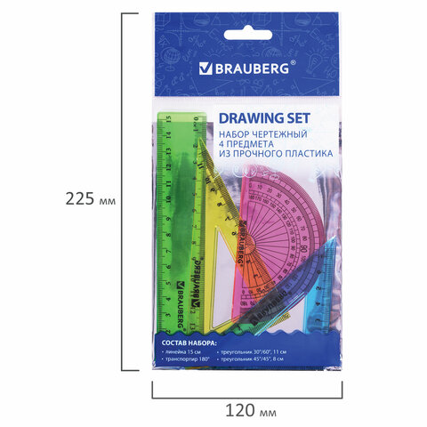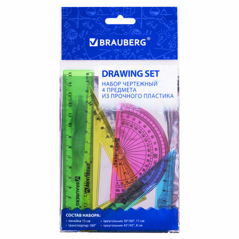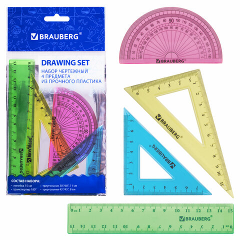 Набор чертежный геометрический BRAUBERG предназначен для выполнения чертежных работ.