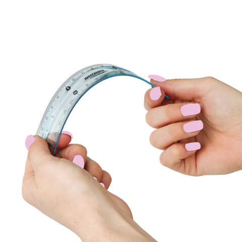 Набор чертежный малый гибкий ЮНЛАНДИЯ "FLEX" (линейка 15 см, 2 треугольника, транспортир), пенал, 210681