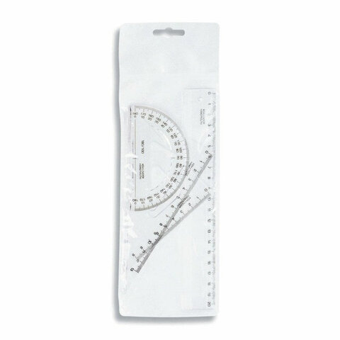 Набор чертежный малый KOH-I-NOOR (линейка 20 см, 2 треугольника, транспортир), прозрачный, европодвес, 750950, 075095000000RU