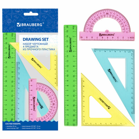Набор чертежный геометрический BRAUBERG предназначен для выполнения чертежных работ.