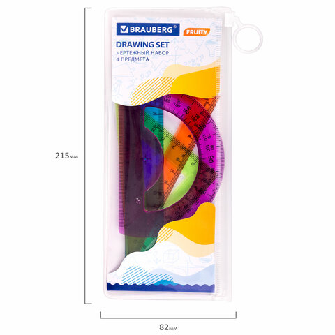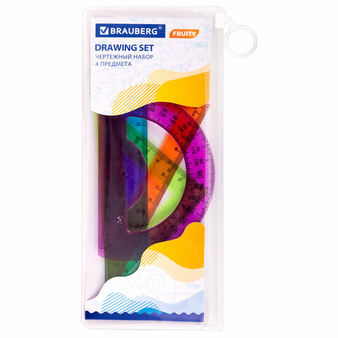 Набор чертежный BRAUBERG "FRUITY" предназначен для выполнения чертежных и измерительных работ в школе и дома.
