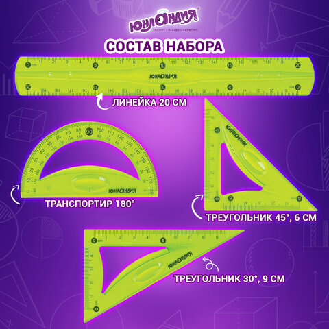 Гибкий ударопрочный набор чертежных инструментов ЮНЛАНДИЯ "FLEX" предназначен для чертёжных и измерительных работ.