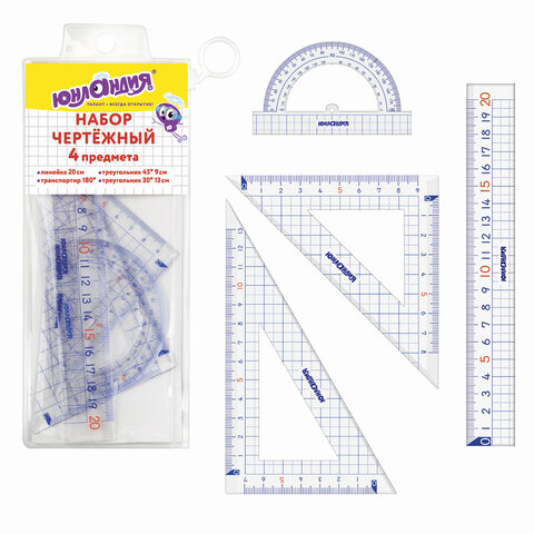 Набор чертежный геометрический ЮНЛАНДИЯ "ШКОЛЬНЫЙ" предназначен для выполнения чертежных и измерительных работ.
