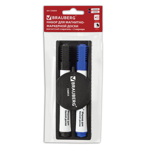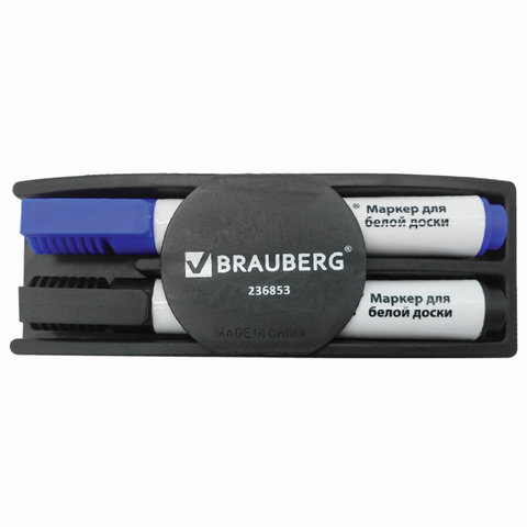 Набор для магнитно-маркерной доски (магнитный стиратель, 2 маркера 5 мм: черный, синий), BRAUBERG, 236853