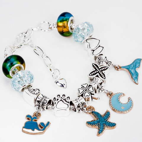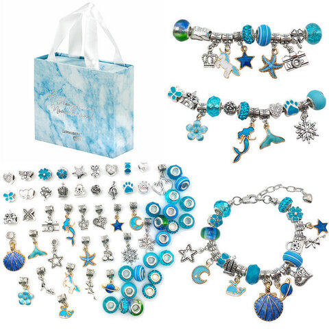 Набор для создания бижутерии и украшений 66 элементов Аквамарин, бусины, браслеты, подвески, BRAUBERG KIDS, 665291