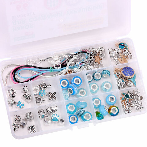 Набор для создания бижутерии и украшений 66 элементов Аквамарин в пластиковом боксе, BRAUBERG KIDS, 665297