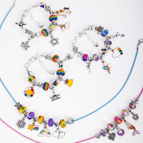 Набор для создания бижутерии и украшений 66 элементов Ассорти в пластиковом боксе, бусины, шармы, BRAUBERG KIDS, 665296