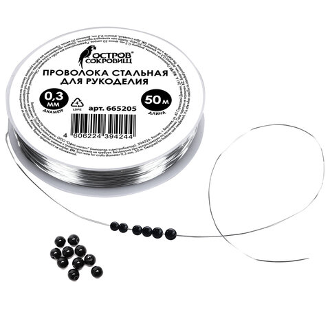Проволока стальная для рукоделия, диаметр 0,3 мм, длина 50 м, ОСТРОВ СОКРОВИЩ, 665205