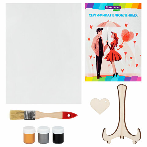 Набор отпечатки рук: холст 18х24 см, перламутр 3 цвета, кисть + сертификат и подставка В ПОДАРОК! BRAUBERG HOBBY, 192528