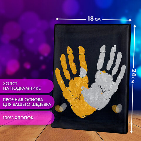 Набор отпечатки рук: холст 18х24 см, перламутр 3 цвета, кисть + сертификат В ПОДАРОК, BRAUBERG HOBBY, 192531