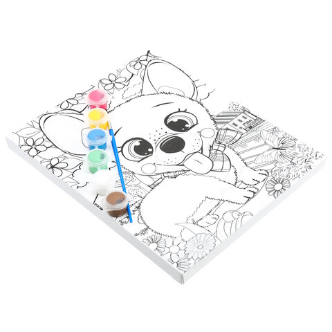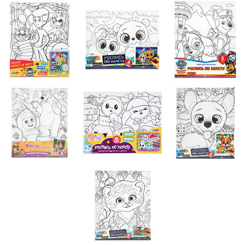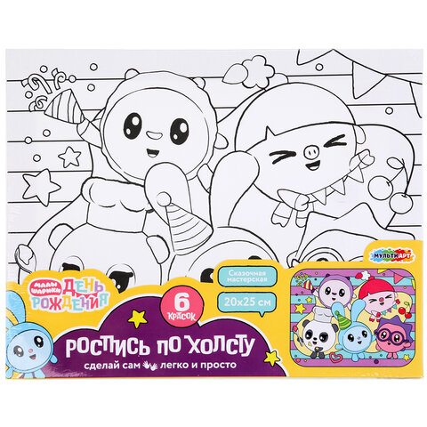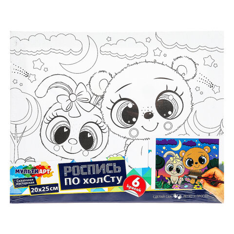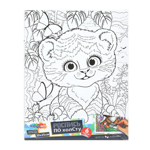 Картина детская по контуру, АССОРТИ 7 видов, 20х25 см, на подрамнике, акрил, кисти, МУЛЬТИ АРТ, 8084