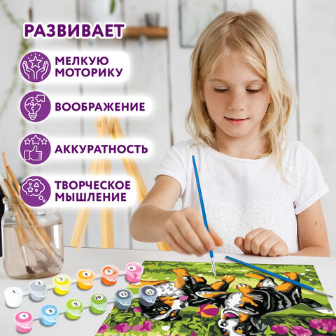 Картина по номерам 15х20 см, ЮНЛАНДИЯ "Щенки на прогулке", на холсте, акрил, кисти, 662501