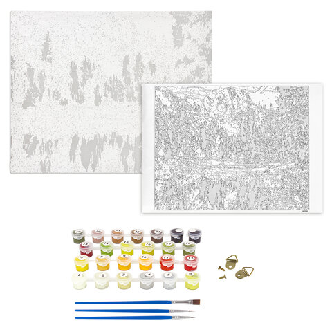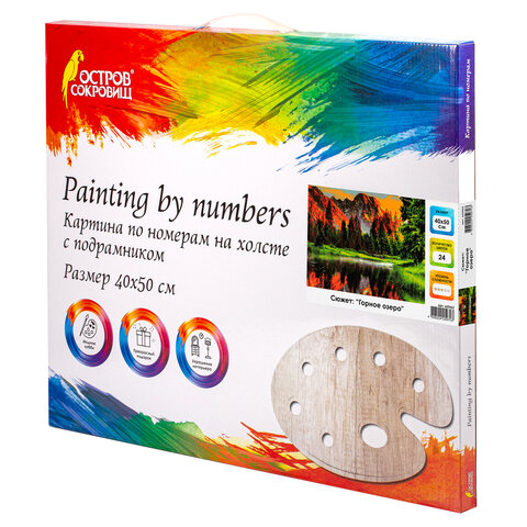 Картина по номерам 40х50 см, ОСТРОВ СОКРОВИЩ "Горное озеро", на подрамнике, акриловые краски, 3 кисти, 662462