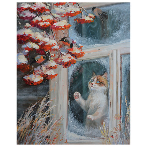 Картина по номерам ОСТРОВ СОКРОВИЩ "Кот и снегири" – это отличный способ почувствовать себя художником и интересно провести время. Работа над картиной развивает внимательность, усидчивость, аккуратность.