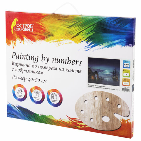 Картина по номерам 40х50 см, ОСТРОВ СОКРОВИЩ "Лунная ночь", на подрамнике, акрил, кисти, 663282
