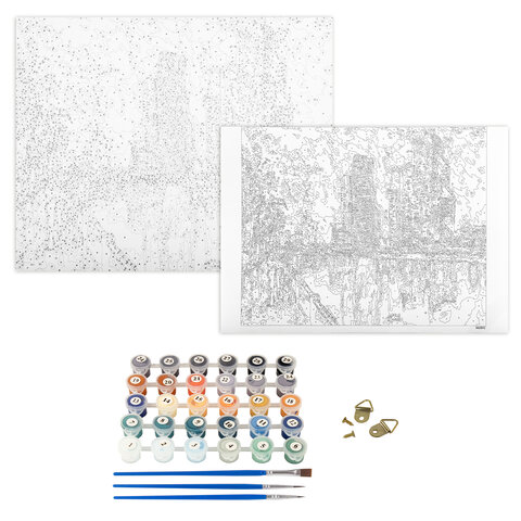 Картина по номерам 40х50 см ОСТРОВ СОКРОВИЩ "Магия неоновых огней. Москва-сити" на подрамнике, акрил, кисти, 662890