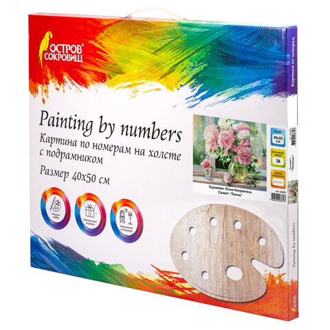 Картина по номерам 40х50 см, ОСТРОВ СОКРОВИЩ "Пионы", на подрамнике, акрил, кисти, 662898