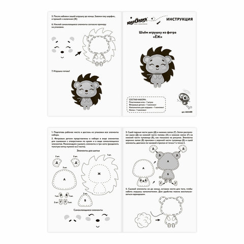 Набор для шитья игрушки из фетра "Ёжик", ЮНЛАНДИЯ, 664488