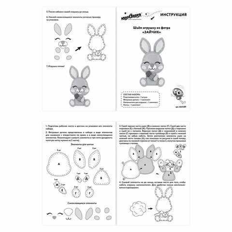 Набор для шитья игрушки из фетра "Зайчик", ЮНЛАНДИЯ, 664489