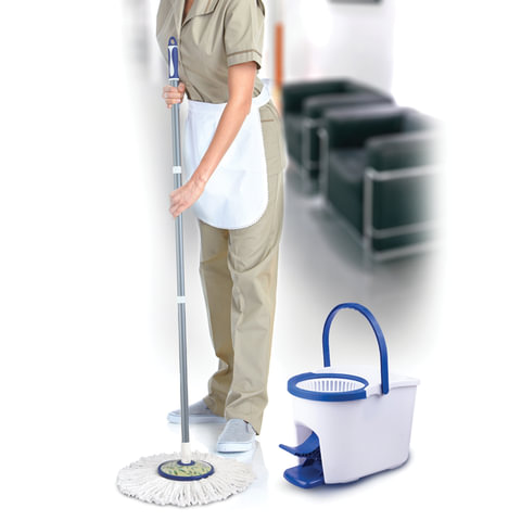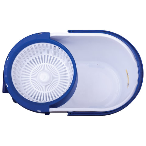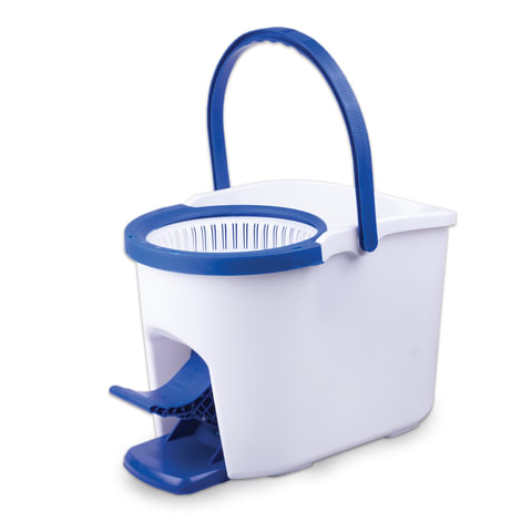 Швабра с отжимом и ведром 11л/5л, центрифуга, отжим педалью, круглая насадка липучка, бело-синий, LAIMA, 601459