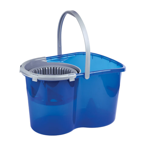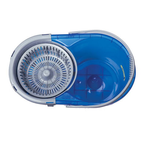 Швабра с отжимом и ведром 14л/5л, отжим центрифуга / рукоятка, 2 круглые насадки, крепление кольцо, синий, LAIMA, 601460