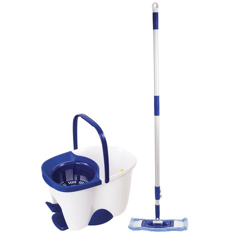 Швабра с отжимом и ведром 18 л / 8 л, центрифуга, отжим педалью, 2 флаундера/насадки круглый и прямоугольный, бело-синий, LAIMA, 603625