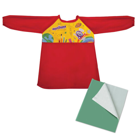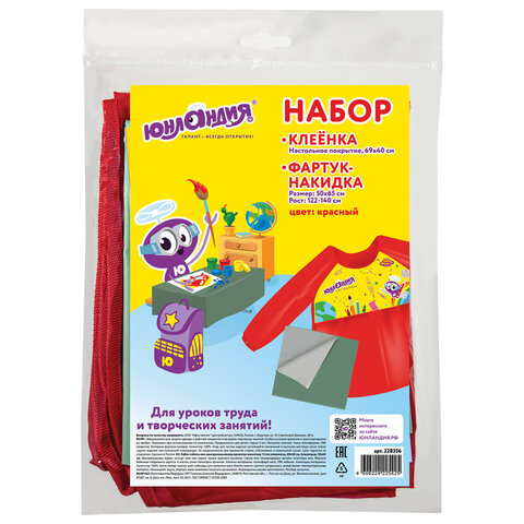 Набор для уроков труда ЮНЛАНДИЯ, клеенка ПВХ 40x69 см, фартук-накидка с рукавами, красный, 228356