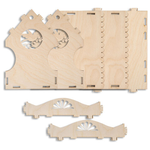 Кормушка для птиц "Рябинка" поставляется в разобранном виде, возможна сборка без клея и молотка. Все детали выполнены из качественной, шлифованной фанеры. Готовое изделие можно раскрасить акриловыми и гуашевыми красками или покрыть лаком.