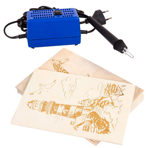 Набор, состоящий из выжигателя и восьми дощечек, предназначен для выжигания художественных узоров, рисунков и изображений на деревянных поверхностях и коже. Специальная подставка в наборе обеспечивает дополнительное удобство применения.