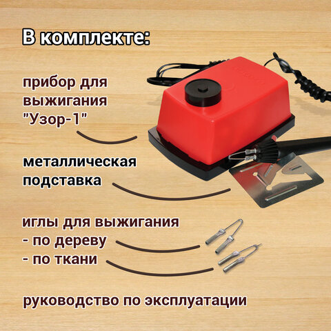 Прибор для выжигания по дереву и ткани "Узор-1", регулировка мощности, 2 насадки, 881370, ЭВД-20/220
