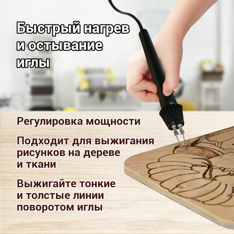 Предназначен для выжигания по дереву. Благодаря игле специальной конструкции можно использовать прибор также для выжигания по синтетической ткани - капрону, искусственному шелку, полиэстеру, нейлону, тюлевой сетке и тп.