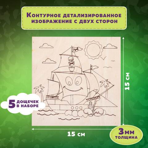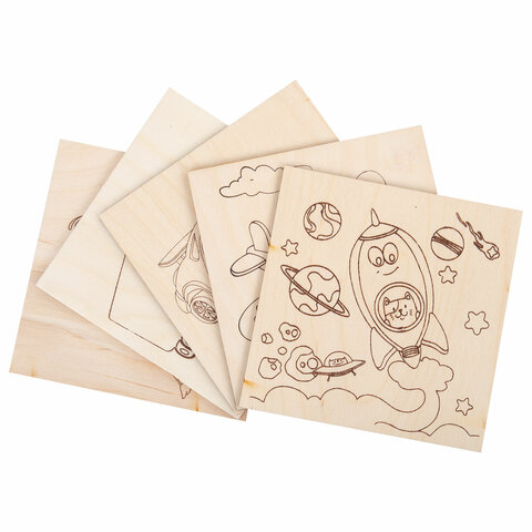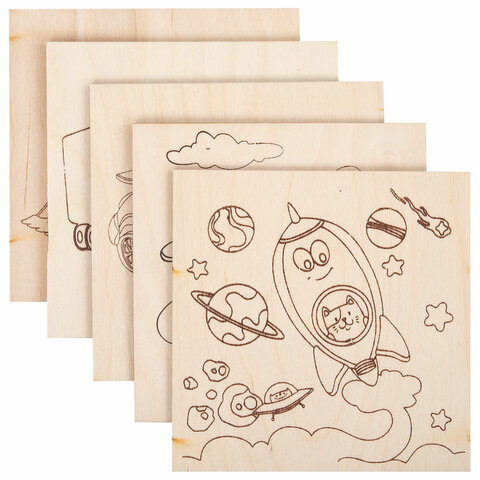 Заготовки деревянные для выжигания "Транспорт", 5 шт., 10 рисунков, 15х15 см, BRAUBERG HOBBY, 665305