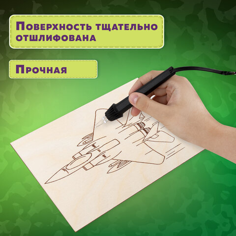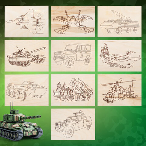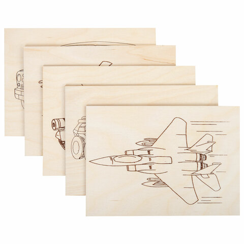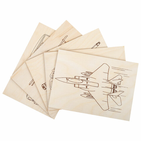 Заготовки деревянные для выжигания "Военная техника", 5 шт., 10 рисунков, 15х21 см, BRAUBERG HOBBY, 665308